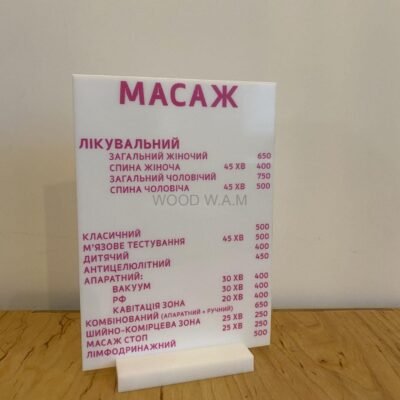 Інформаційні таблички з прайсом — для зручного ознайомлення з послугами;