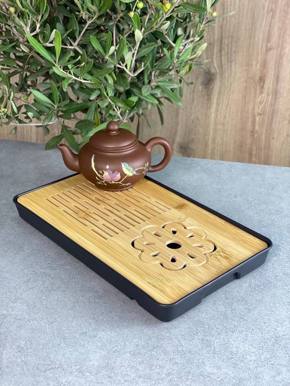Чабань 32×18 см — компактна чайна дошка для зручного та естетичного проведення чайних церемоній. Ідеально підходить для заварювання чаю в традиційному китайському стилі. Має дренажну систему для зливу води, легко миється та займає мало місця. Виготовлена з якісного матеріалу, стане стильним доповненням до вашого чайного простору.