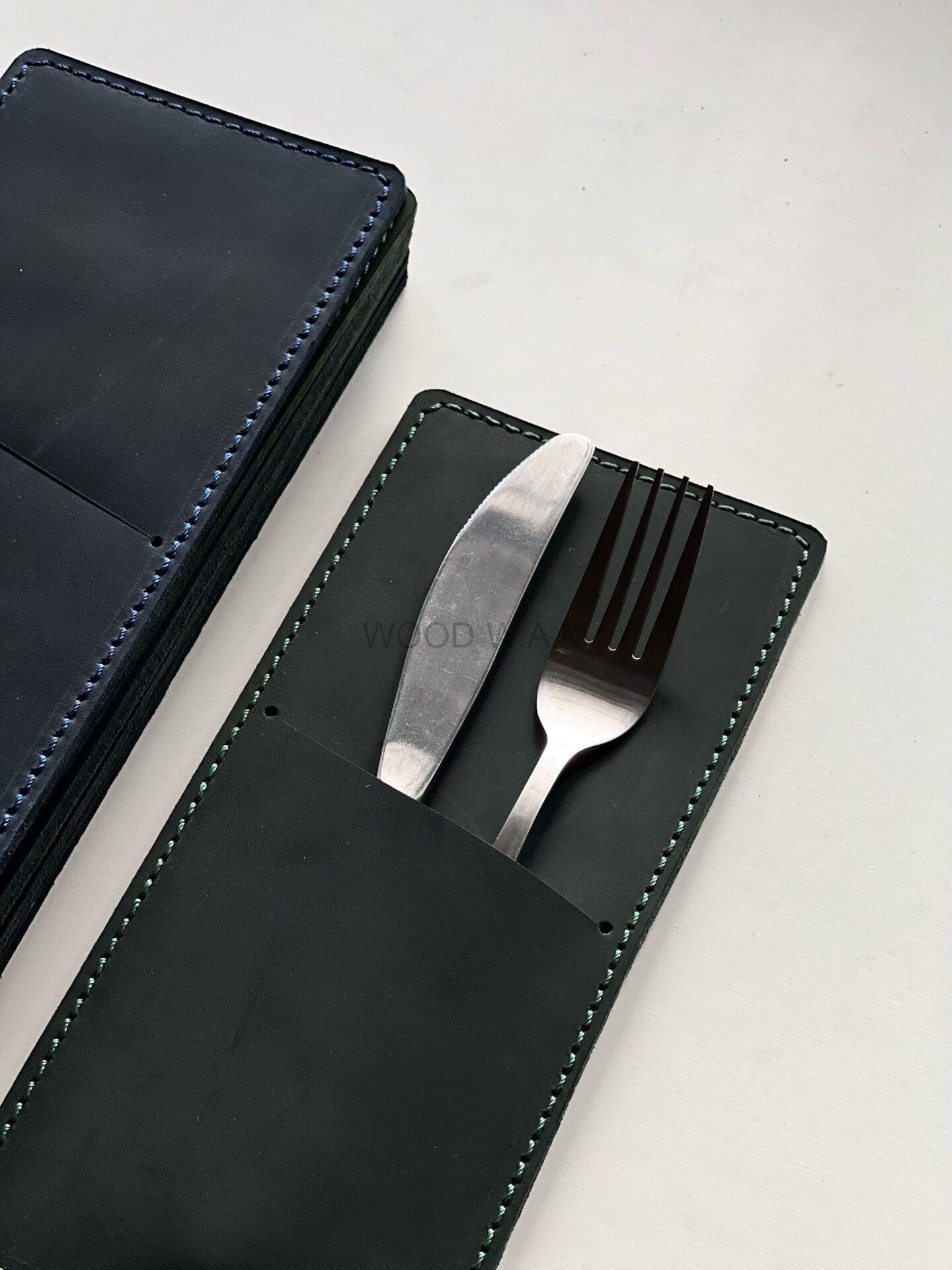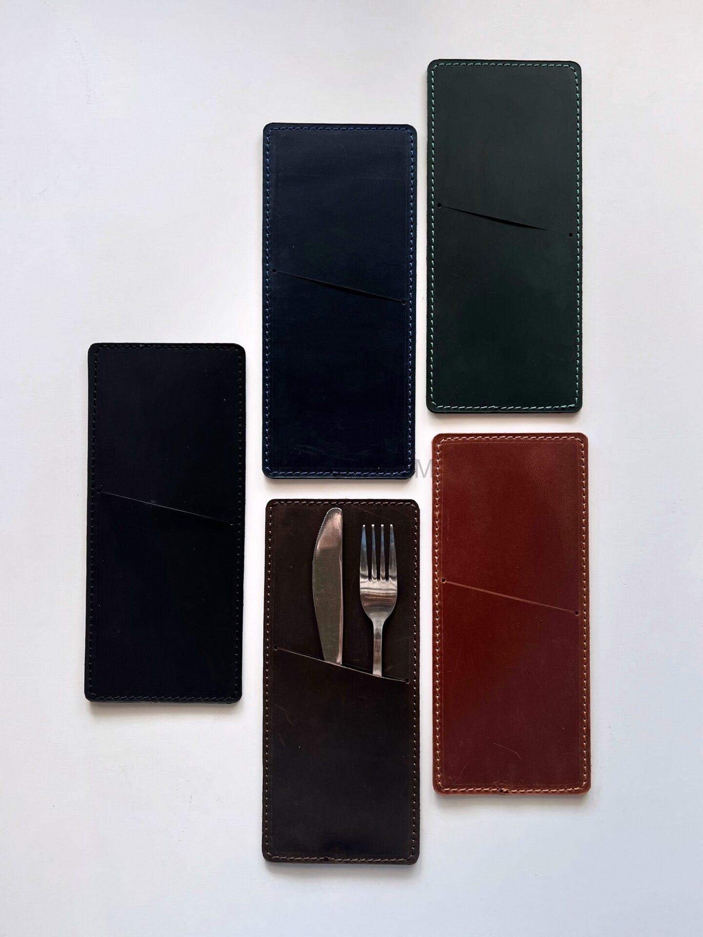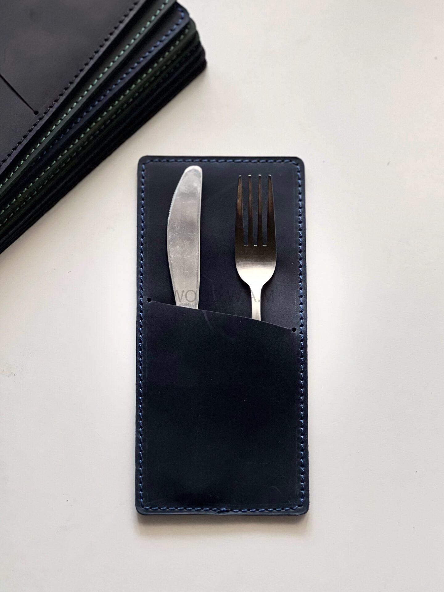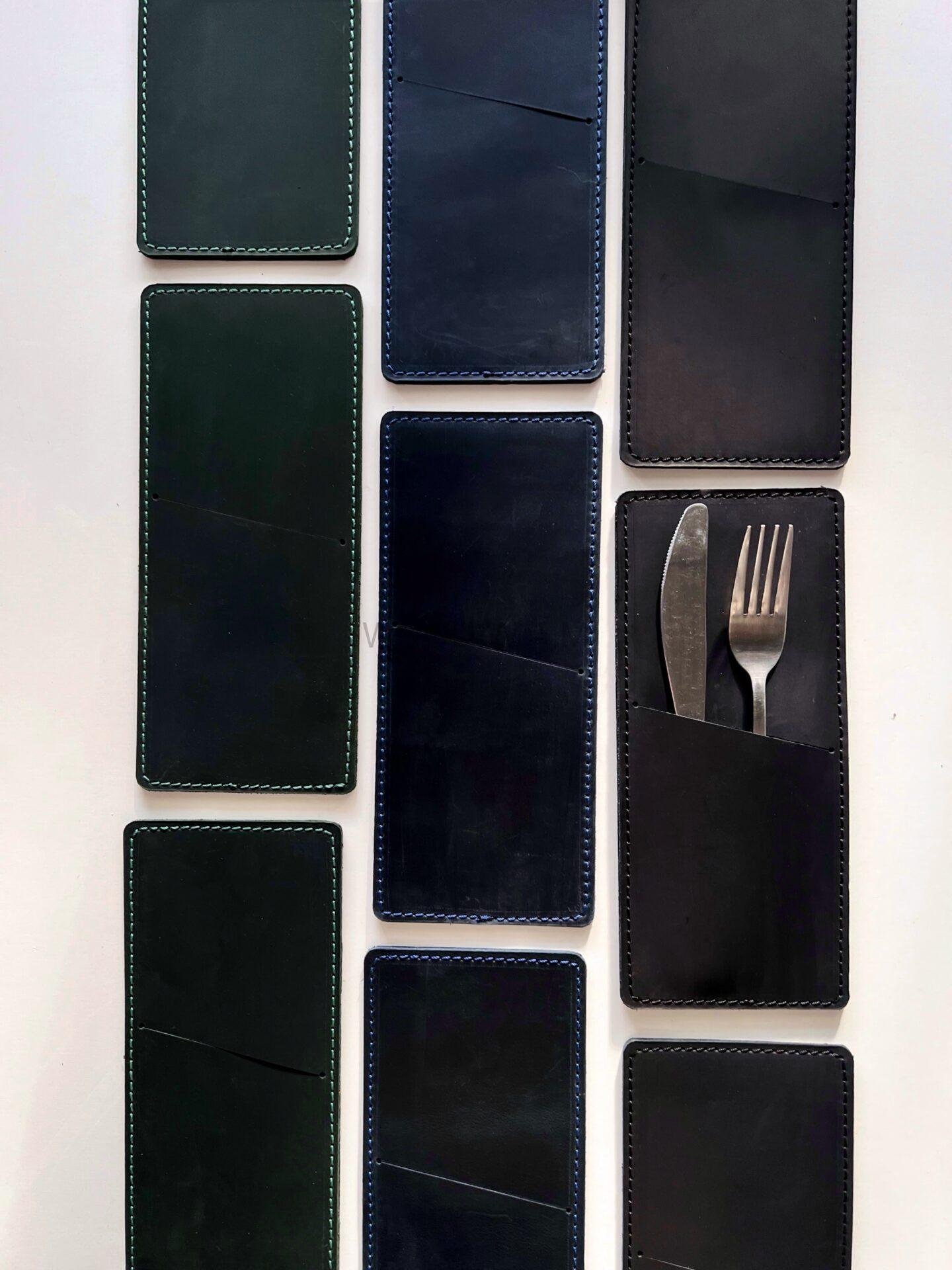 Шкіряний конверт для столових приладів – це стильний та функціональний аксесуар, який допомагає організувати Ваші столові прибори з елегантністю. Виготовлений з натуральної шкіри, цей конверт поєднує в собі класичний дизайн та надійність.