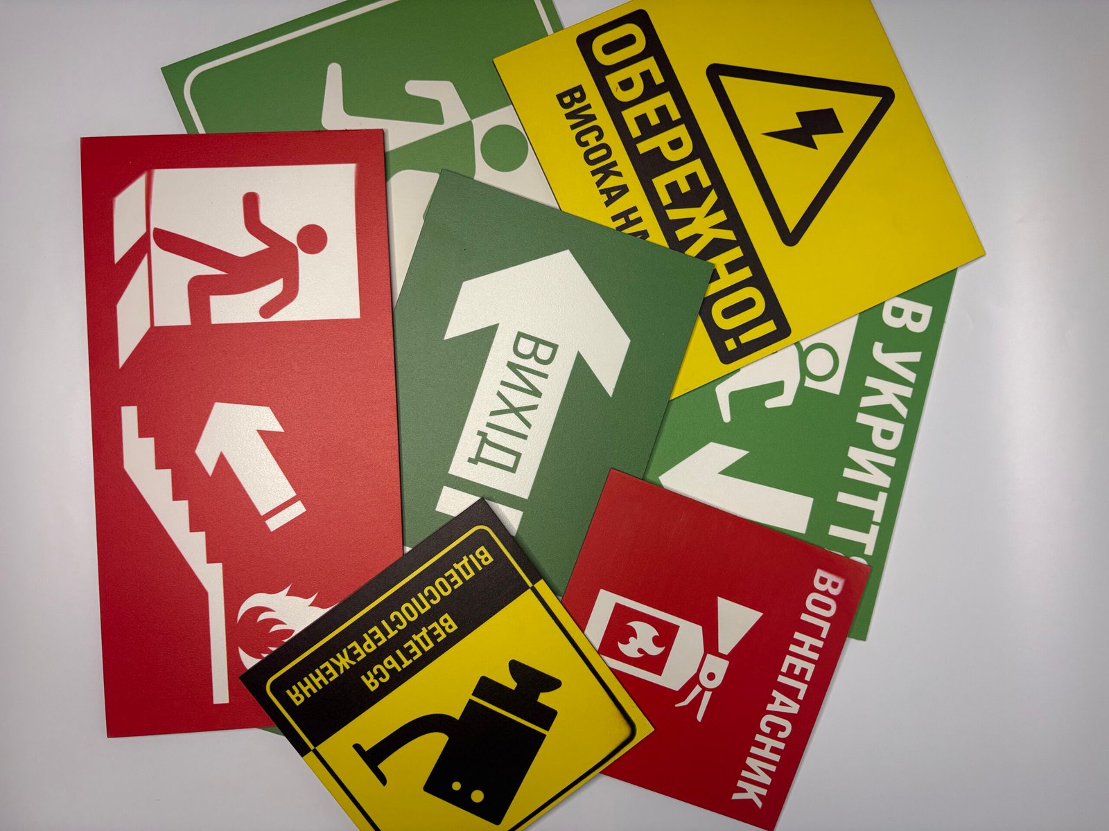 Завдяки чіткому друку та контрастному дизайну такі таблички добре помітні здалеку й допомагають орієнтуватися у приміщеннях чи на території. Можливе виготовлення в різних розмірах, кольорах та стилях.